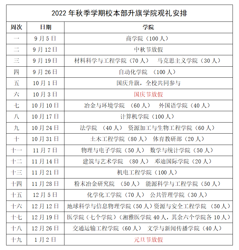 2022年秋季学期校本部升旗工作安排