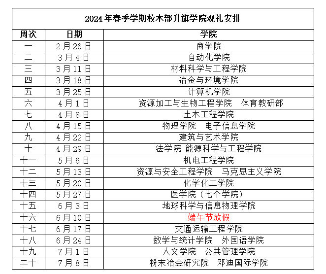 2024年春季学期校本部升旗工作安排