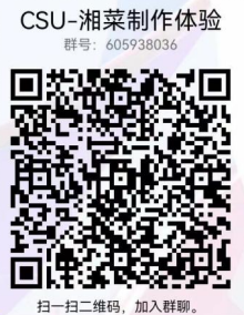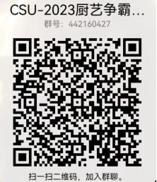 请于4月20日中午12:00前,将报名表命名为:学院-主厨姓名-菜品名称,发送至邮箱csu_shqy@163.com。并以实名(学院+姓名)加入参赛交流群(QQ:442160427),参赛队伍请关注群内消息,后续通知将在群内发布。