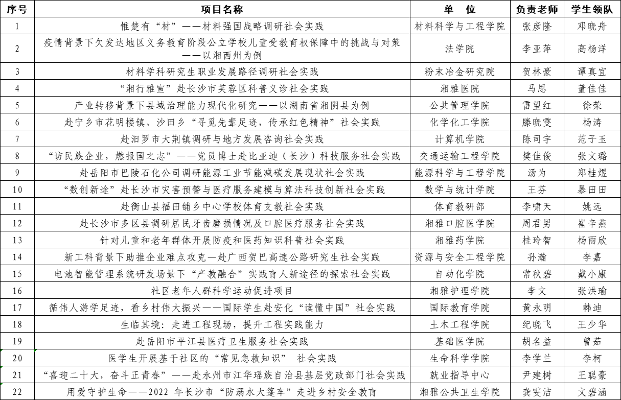 经各研究生暑期社会实践团队申请、学院审核推荐、学工部和研究生院组织专家评审,确定“惟楚有“材”——材料强国战略调研社会实践”等22个团队项目为2022年研究生暑期社会实践专项立项项目,现将结果公告如下: