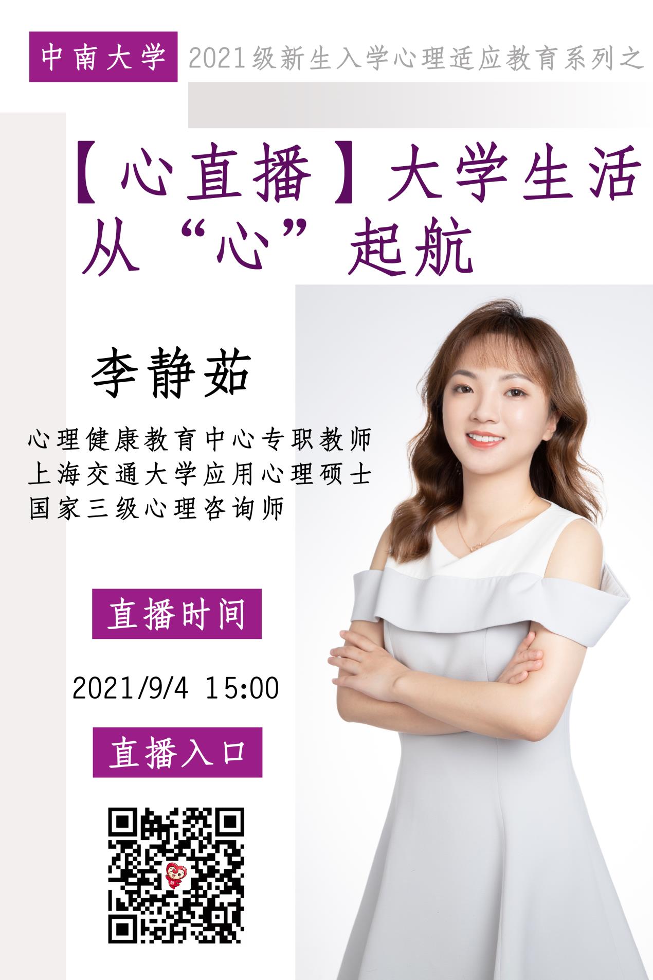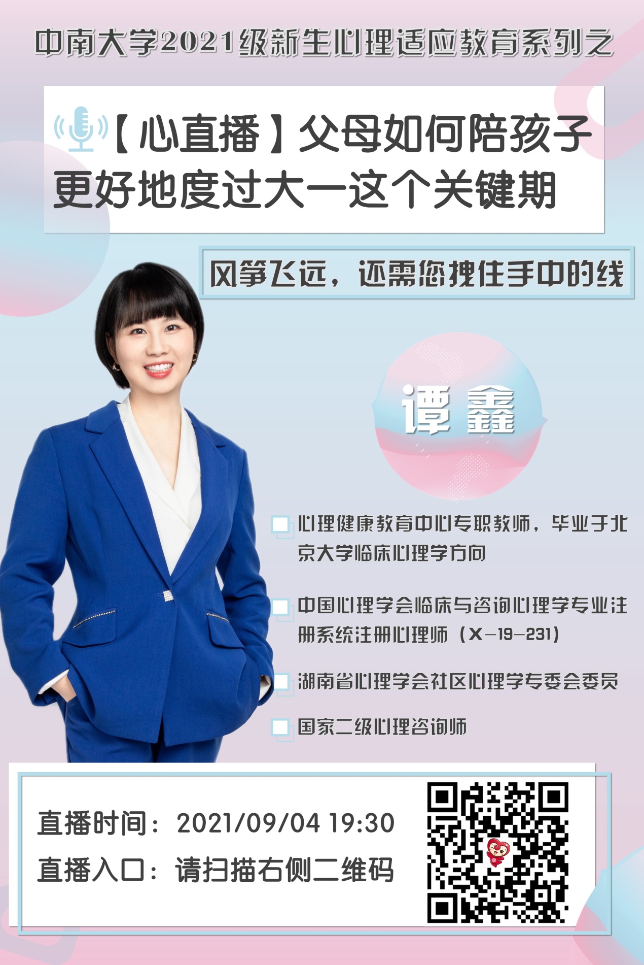 为加快本科新生对于大学生活的心理适应,以及新生家长对于孩子成为大学生后的心理调整,心理中心将于9月4日举办面向本科新生及家长的两场讲座直播,直播信息详见附件。