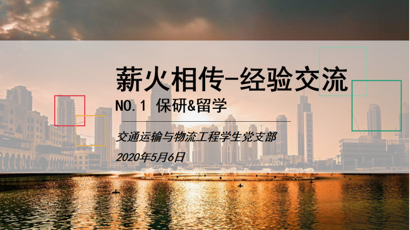 5月6日下午三点,由交通运输与物流工程学生党支部组织的“薪火相传·经验交流”保研与留学专场分享会在线上圆满举行。党支部的四位毕业生王攀、王雨蔷、颜靖洲、王子衿结合自己的毕业去向分享了关于保研与留学的经验及注意事项。分享会吸引了不限于本党支部的100余名同学参与,赢得了同学们的一致好评。