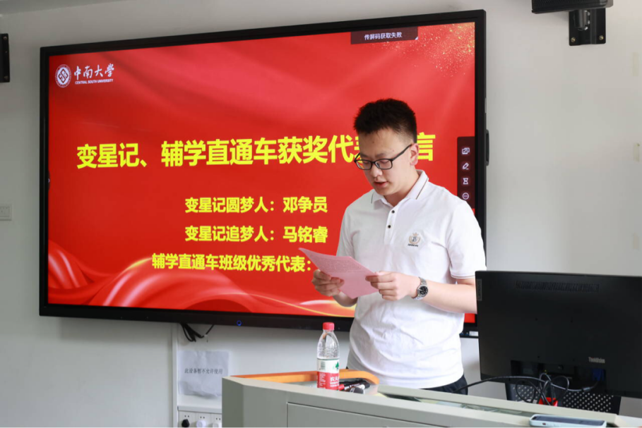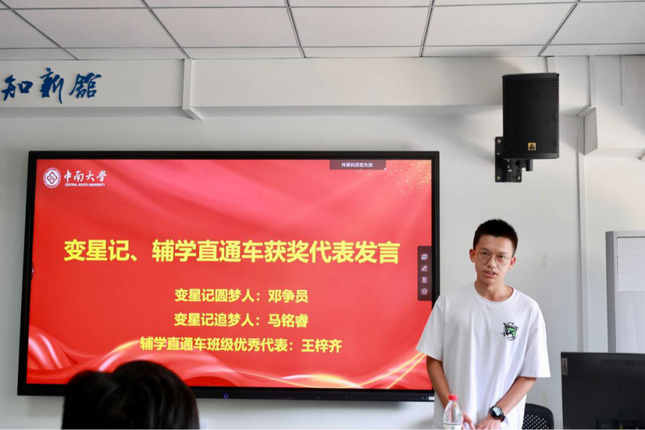 心有山海,砥砺深耕。5月24日下午,知新馆“30天变星记”暨“辅学直通车”活动颁奖仪式圆满举办,学工部管理科万可老师,知新馆指导老师宋宁宇老师与变星记优秀学生代表,“辅学直通车”优秀班集体代表共同参加了此次活动,共同见证在辅学指导下追梦中南人的完美蜕变。
