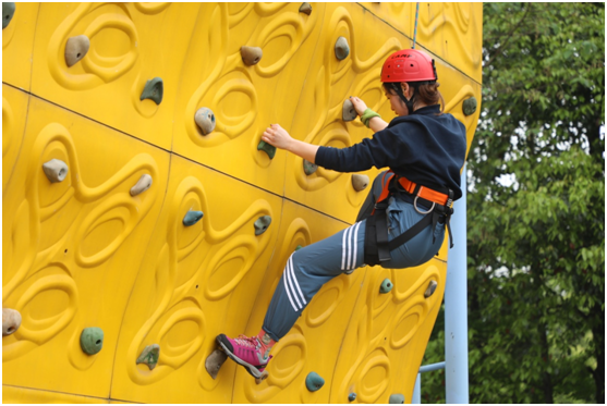 攀岩时的拉绳者、巨人梯上的队友、“攀岩”中的保护者,肩上扛起的是一份责任,接收的是一份信任,体现的的是信任感、责任感,也是团队意识;装备的严谨穿戴、流程的严格遵守,体现的是规则意识;上场前手搭手的力量传递、异口同声喊出的一声声洪亮的“加油”,那鼓励与赞美的力量,又在挑战者鼓起勇气完成“不可能完成的任务”时,体现得淋漓尽致。