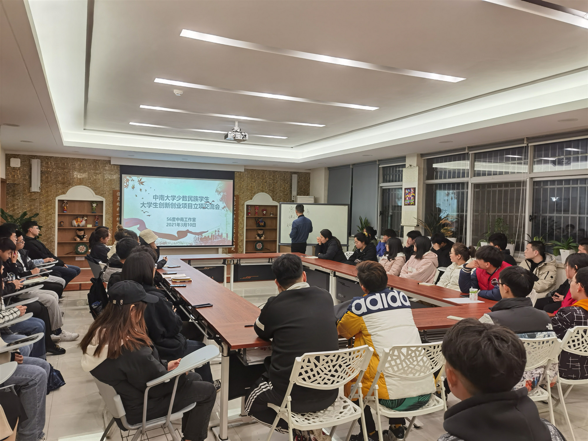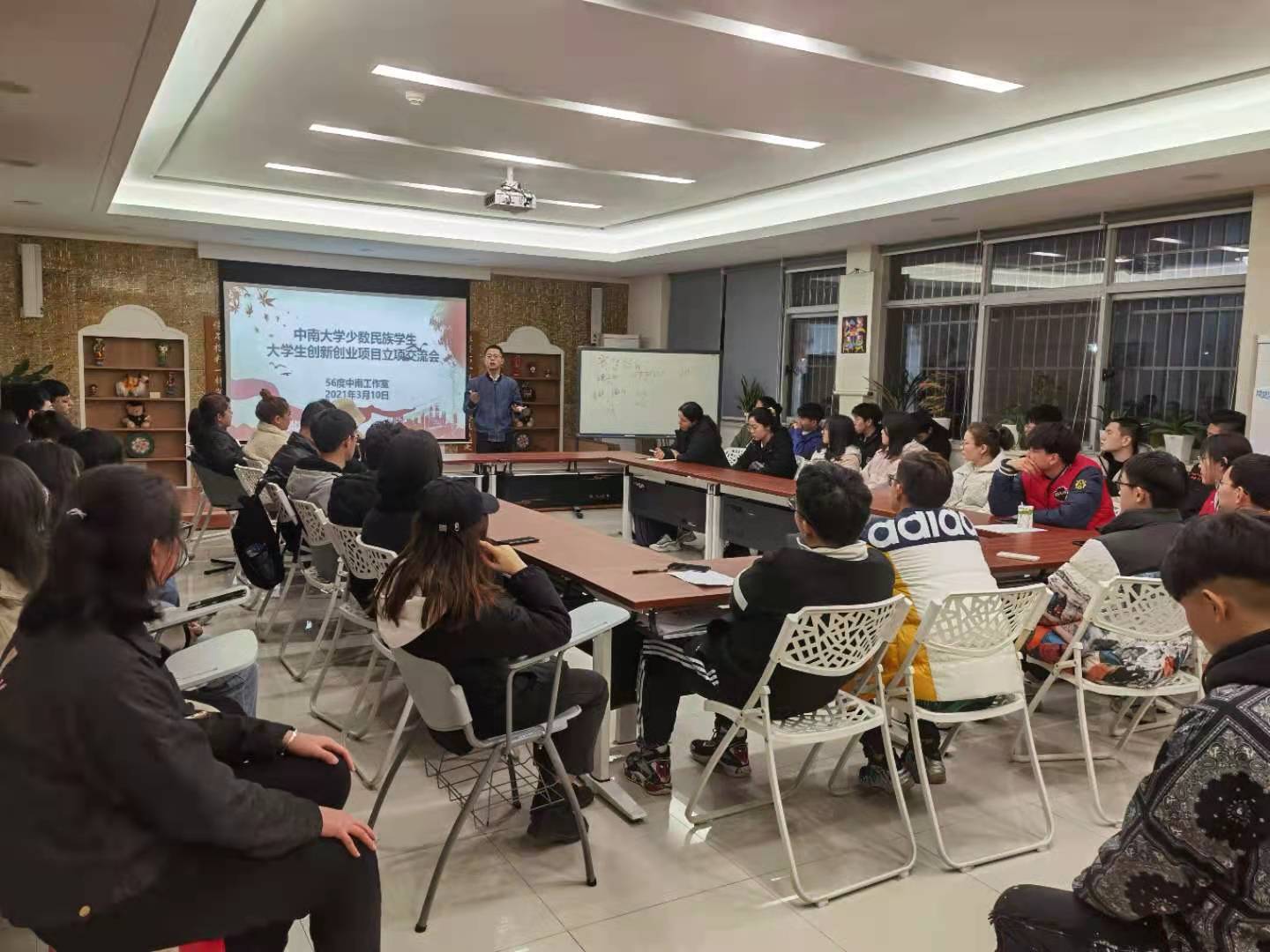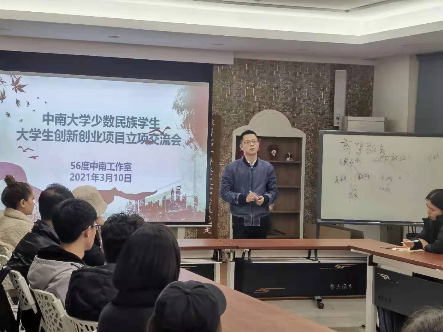 2021年3月10日晚7时,william威廉英国官网少数民族学生2021年大学生创新创业项目立项交流会在毓秀楼117顺利举行。少数民族学生事务办公室哈纳提老师主持会议,此次申报指导会邀请了计算机学院研究生辅导员、创新创业教育专干兼学科竞赛管理专干刘逸峰老师主讲,参加交流会的还有新疆西藏籍19级、20级少数民族本科生。