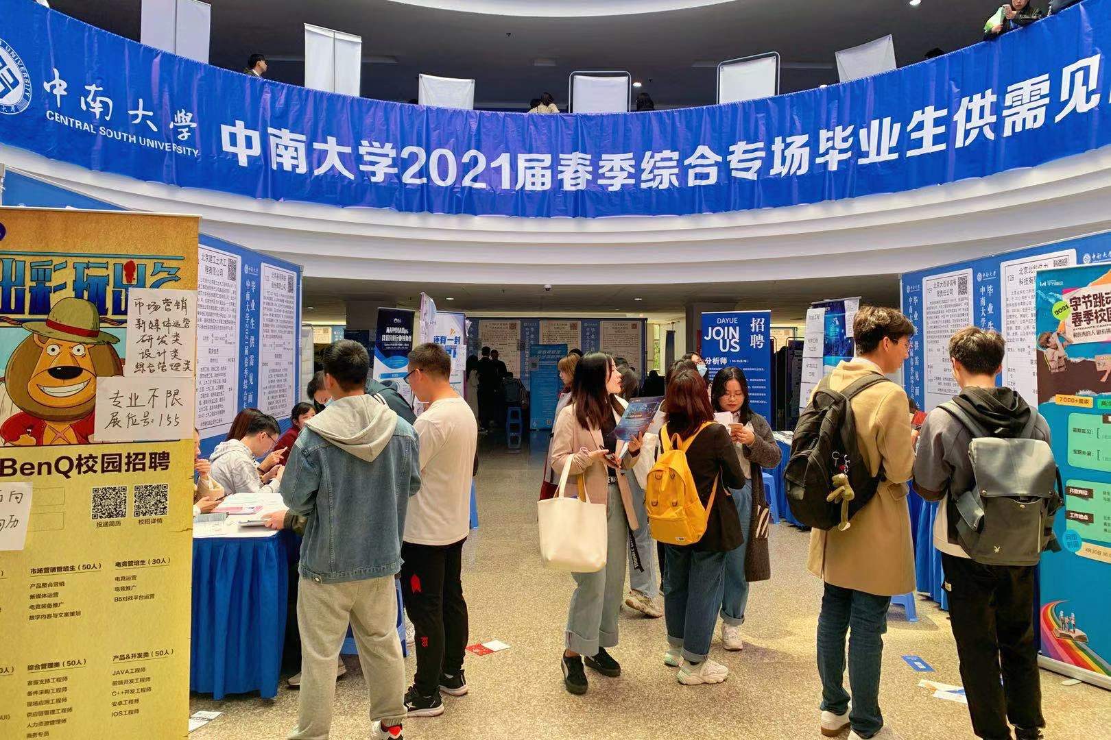 双选会现场气氛热烈,秩序井然,佩戴口罩的毕业生们经过现场测温、展示健康码后有序进入会场。此次双选会参会单位除中兴通讯、字节跳动、京东方等知名企业外,还有由山东省人社厅、厦门国家火炬高技术产业开发区等组织的80余家企事业单位组团前来揽才。