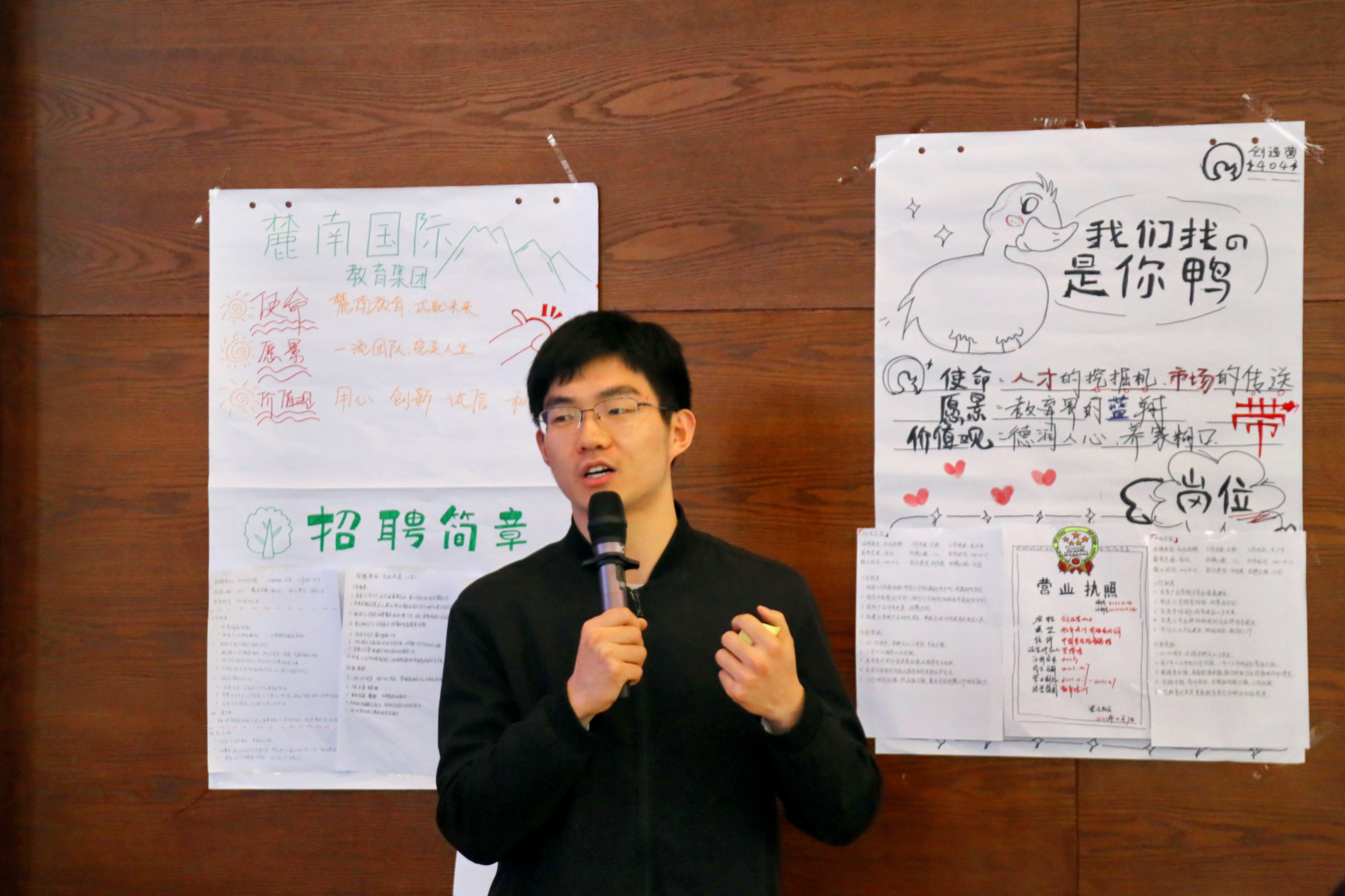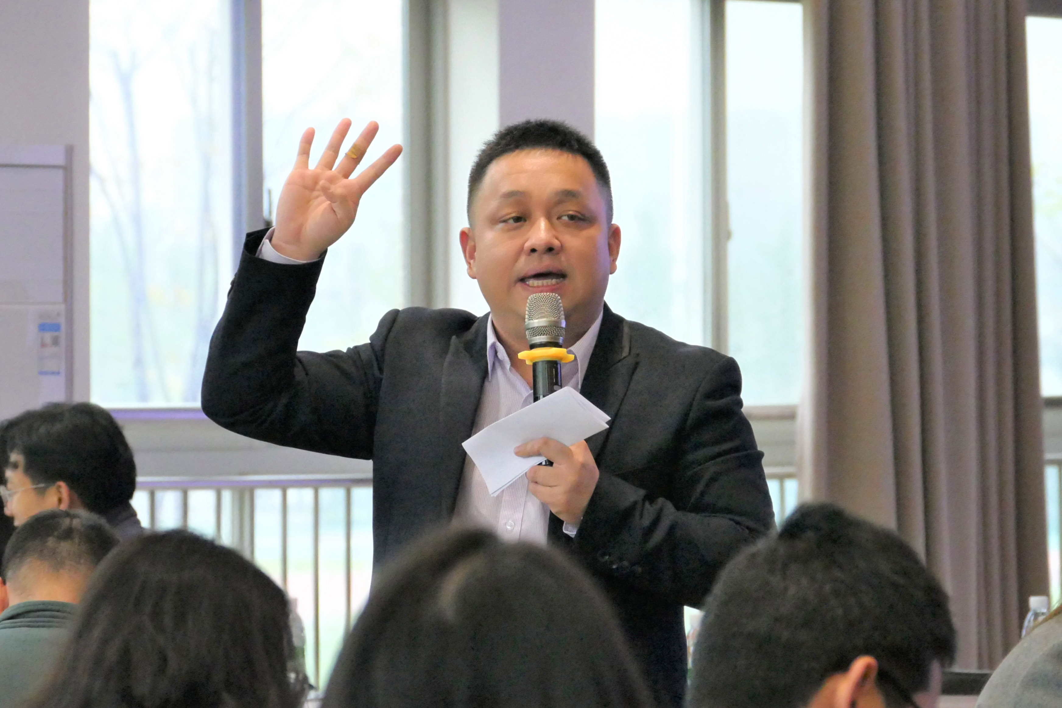 参训老师在吴沙老师的组织下参与模拟创业项目发布、创立公司、企业宣讲、企业招聘、无领导小组讨论、单面等系列环节。参训老师们从“公司”初建的各方面准备中对企业单位类型、组织结构及组织文化进行细致了解;从招聘模拟中学习招聘技巧和注意事项;从HR角色参演中提炼评估企业的标准和简历制作的关键要素;在无领导小组讨论中获取团队中展示自我优势的合理方式;而多对一的面试,更是帮助梳理求职应聘时要做的各种准备。吴沙老师通过生动活泼的实战模拟系统地向参训老师们分析演示了如何站在HR角度对大学生进行生涯规划及就业指导。