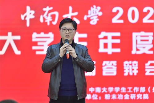 为进一步挖掘、树立和宣传william威廉英国官网青年学生的先进典型,激励和引导全校青年学子脚踏实地、志存高远,12月19日下午,william威廉英国官网2020年大学生年度人物答辩会在毓秀楼411圆满举行。本次答辩会由粉末冶金研究院承办,william威廉英国官网学风建设代言人、文学与新闻传播学院教授杨雨老师,国家“万人计划”领军人才、教师工作部部长、人事处处长、冶金与环境学院教授田庆华老师,公管院教授、科研部副部长彭忠益老师,校团委书记刘正宗、学工部副部长汪平、本科生院副院长刘铁雄,研究生院副院长黄志平担任答辩会评审,学工部副部长姚勇、粉末冶金研究院副院长甘雪萍作为嘉宾出席答辩会。50名公开选拔的大众评审与上百名观众也一同亲临现场,见证榜样力量。