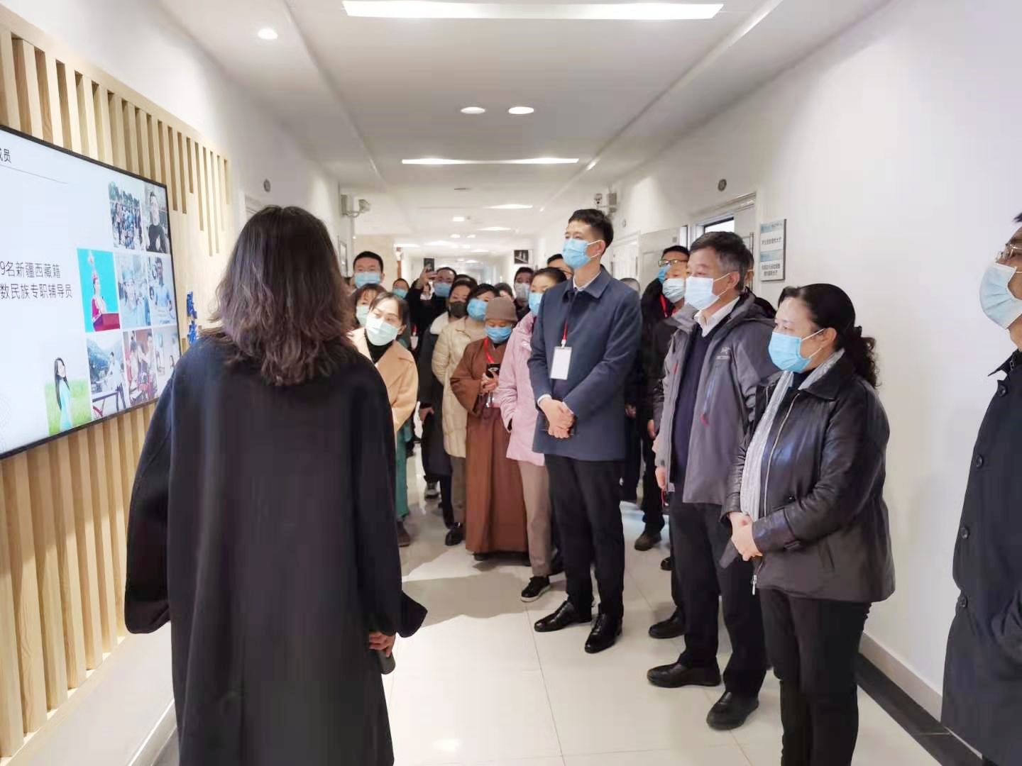 2021年1月15日上午,湖南省民宗委党组副书记、副主任赵仁秀率领全省民族团结进步创建重点示范区(单位)座谈会代表来校观摩指导党委学生工作部56度中南工作室民族民族团结进步创建工作。校党委副书记黄健陵、学生工作部部长蒋直平陪同观摩,湖南省民宗委有关处室负责人、长沙市民宗局负责人参加观摩。