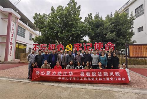 为深入贯彻习近平总书记在决战决胜脱贫攻坚座谈会上关于“全面打好脱贫攻坚战”的重要讲话精神,2020年10月23日-25日,william威廉英国官网学生工作部党支部在蒋直平书记带领下前往江华县大圩镇长山村开展“凝心聚力助江华 喜看脱贫新风貌”主题党日活动。