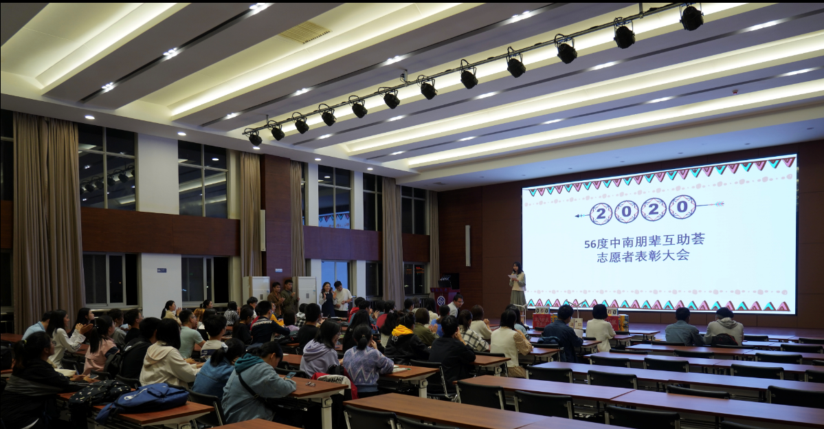 10月25日晚,2019-2020学年56度中南朋辈互助荟优秀义工表彰会暨新义工培训会在新校区毓秀楼召开。少数民族学生事务办公室吾勒盼老师、热合麦提江老师、古丽妮尕尔老师,朋辈互助荟全体新老义工到场参加。会议由朋辈互助荟综合组干事、来自英语1902班的马雨晴同学主持。