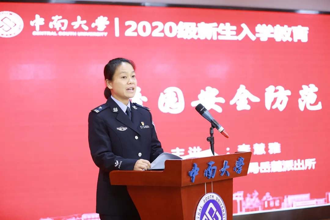 长沙市公安局岳麓分局派出所警官李慧雅和湘安消防公益服务中心主任吴悔结合自身工作经历,通过展示和解读电信诈骗和消防安全的案例,向新生强调校园安全防范和消防安全的重要性。