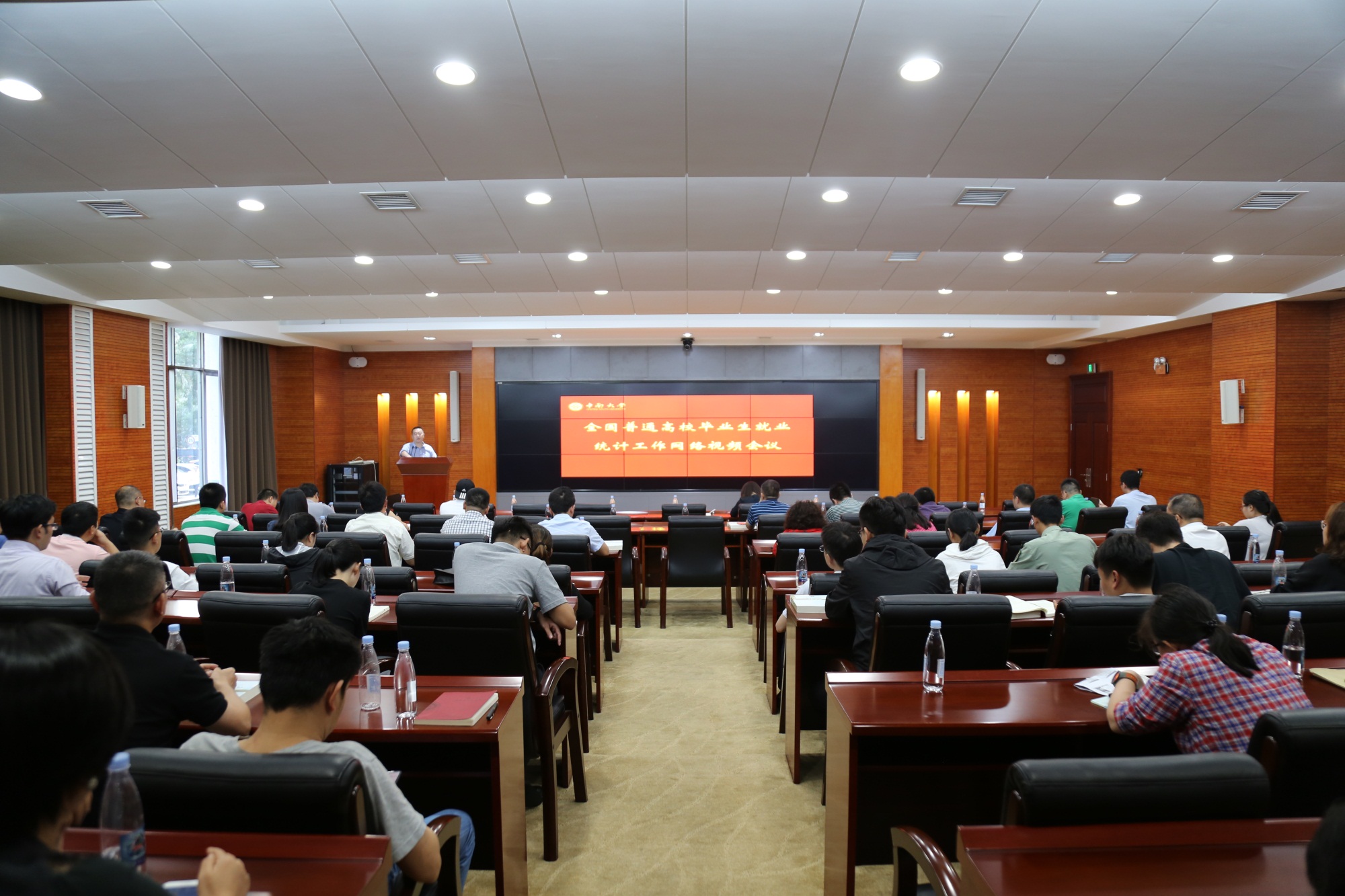 9月19日下午,全国普通高校毕业生就业统计工作网络视频会议在京召开,教育部党组成员、副部长翁铁慧,高校学生司党支部书记、司长王辉出席大会并发表讲话。我校在科教大楼南楼一楼会议室设分会场,校党委副书记、组织部部长李景升出席会议并讲话,就业指导中心主任徐赞及有关职能部门负责人,各二级学院学生工作负责人和辅导员代表参加会议。