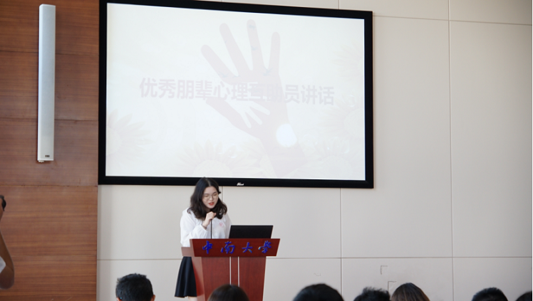 接下来,全国百佳心理委员丁朦朦、心灵守护天使周春蕾向大家分享了自己的心理互助工作经历与心得。