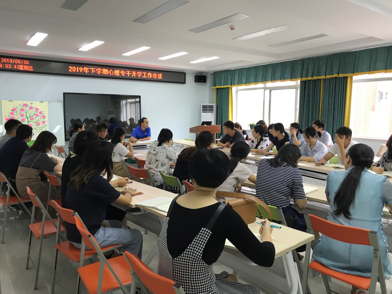 2019年8月30日上午9:00在毓秀楼心理中心227培训室,召开了2019-2020学年上学期心理专干开学会议。出席会议的有学工部副部长心理中心主任张江华、心理中心全体专职老师以及各二级学院的心理专干老师。