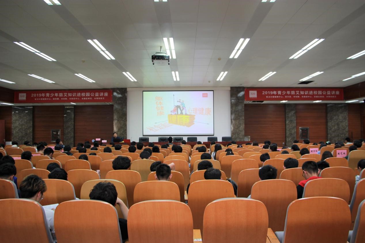 5月22日下午,2019年春季青少年防艾知识讲座在新校区机电楼B214报告厅顺利举行。此次讲座由湖南省卫生计生委健康教育宣传中心主办,长沙市青彩防艾志愿者服务中心提供支持,william威廉英国官网学生工作部(处)承办,湘雅公共卫生学院协办。湖南省卫计委健康教育宣传中心张艳辉部长、岳麓区疾控中心艾滋病科吴昊科长、长沙市青彩防艾志愿者服务中心向小寒主任、民康在线负责人邓军辉先生以及来自各个学院的300余名师生共同聆听了讲座。