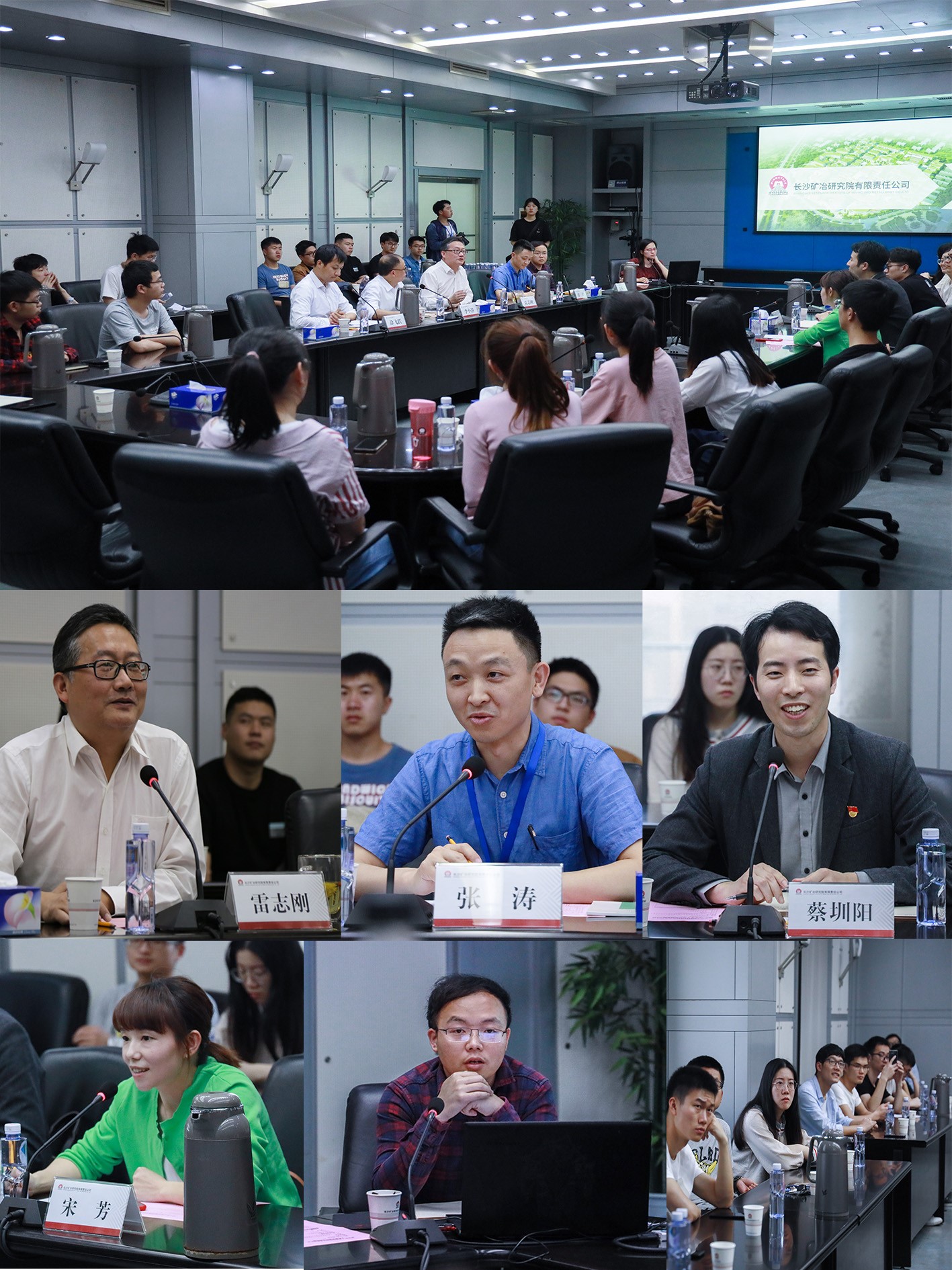 专题报告结束之后一行人先后参观了长沙矿冶研究院双创示范基地展览室、材料所以及分析所。讲解员向在场人员介绍了长沙矿业研究院建设规划、产业布局以及先进的研究场所和仪器设备。同学们在现场与工程师和研究人员进行讨论,互动频频,反响十分热烈。