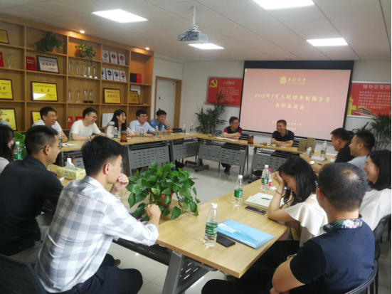 6月20日下午16:00, 2015年7月入职四年制辅导员离职座谈会在毓秀楼“辅导员之家”召开。学生工作部蒋直平部长、汪平副部长、22名即将离职辅导员参加座谈会。座谈会由汪平副部长主持。