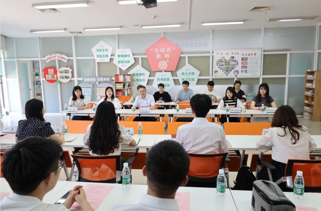 5月19日上午,调研团队来到东南大学,与东南大学教务处宛敏副处长、学籍科蒋春露科长,学习与学业指导中心相关负责老师及学生代表深度交流。宛敏副处长对我校访学团队的到来表示热烈欢迎,并从学科发展、人才培养、育人理念等方面介绍学校基本概况,希望通过此次交流达成校际互学、互鉴、互促、互进的目标,进一步优化双方辅学工作。学习与学业指导中心李敏老师从品牌活动、经验做法、建设成果等方面详细讲解了东南大学学业指导中心基本发展情况。自由交流环节,两校师生就辅学团队管理、学生激励机制、志愿服务认定、特色活动打造、宣传模式及渠道等内容进行交流讨论,气氛热烈。会后,访学团队实地参观了东南大学辅学场馆和“一站式”学生社区。