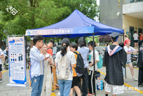 “知礼”篇旨在内化“礼”念,“礼仪知识猜猜看”环节,同学们积极参加猜典籍、猜灯谜、猜汉服朝代、猜国家的活动,面对博大精深的礼仪文化,同学们受益良多;“习礼”篇旨在外化“礼”行,同学们模拟人际交往的各个场景,学习不同的礼仪主题,对站姿、坐姿、蹲姿等礼仪动作进行现场训练,使同学们认识到礼仪与沟通的重要性,同时在微笑照片墙前拍摄一张面带微笑的照片,留下美好的记忆;“达礼”篇旨在规矩“礼”成,两人配合选择正确的学位服并穿着整齐地完成拨穗仪式,回答一条拨穗小贴士即为打卡成功。和谐趣味的氛围让活动达到了高潮。完成了三项打卡活动的同学可参与最终的抽奖。