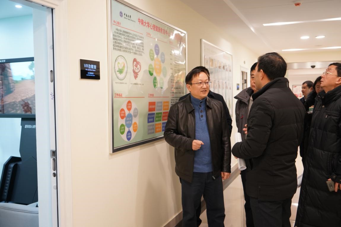 在大学生心理健康教育中心,易书记询问了学校心理健康工作队伍配备情况,参观了心理健康咨询室、活动室等,并重点强调要加强业务培训,提升队伍专业水平。