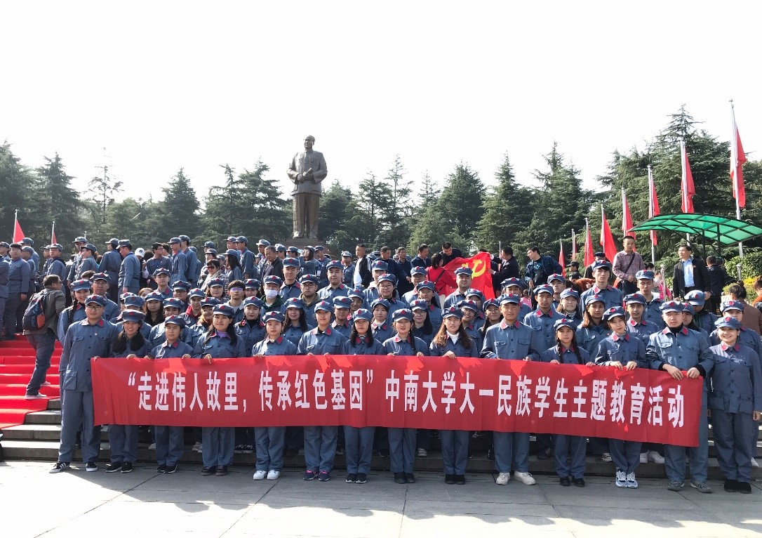 上午7点15分,参加活动的2018级新疆西藏籍少数民族学生在毓秀楼前集合,统一乘大巴前往韶山。行驶途中,导游介绍了韶山名字的由来和毛主席的一些生平事迹,使全体人员对毛泽东同志的胸怀大志的拼搏精神、敢为人先的创新精神、挺直脊梁的自尊精神有了一个更加直观、深刻的感受。