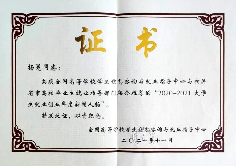 继2021年11月作为湖南省高校唯一获选人获得“2020—2021大学生就业创业年度新闻人物”称号后,杨冕又获评全国高校毕业生基层就业卓越奖,体现出他坚持不懈、志存高远,脚踏实地、勇于开拓的执着追求与奋斗初心。