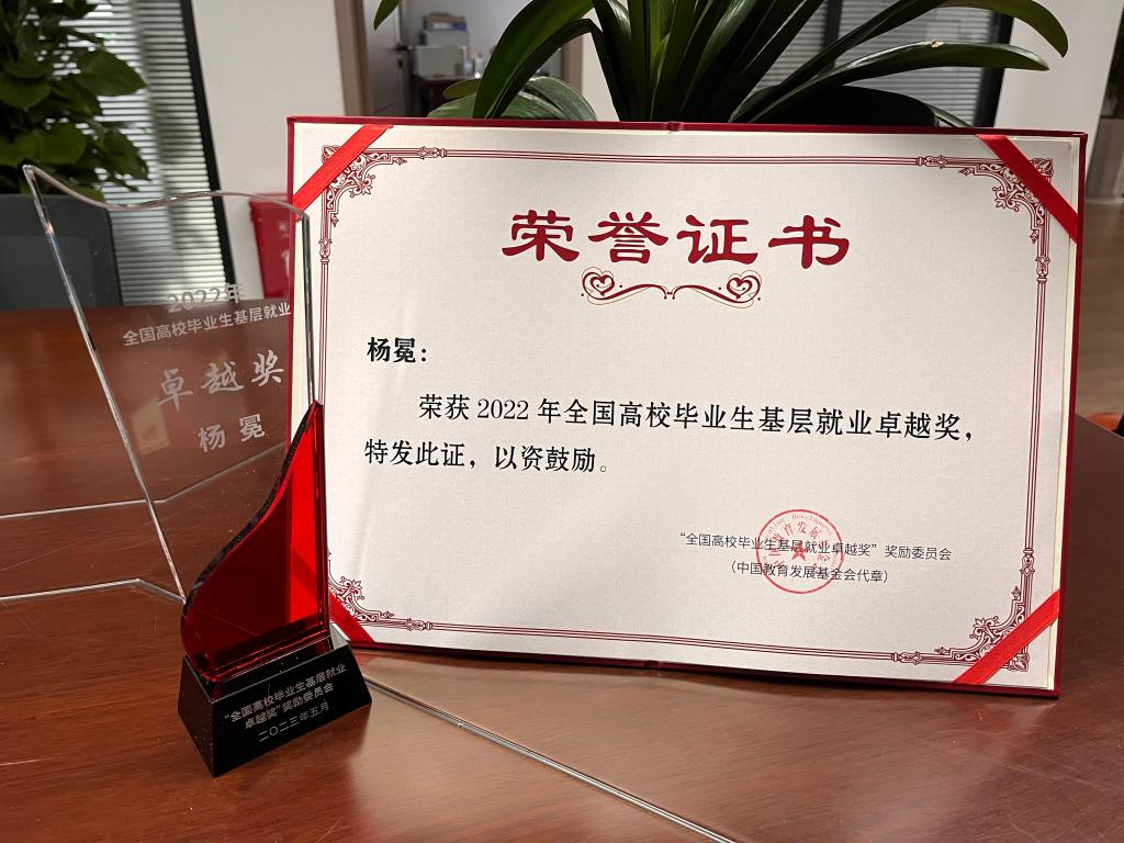 近日,教育部颁发了首届“中国高校毕业生基层就业卓越奖”,我校选调生校友杨冕获此殊荣。