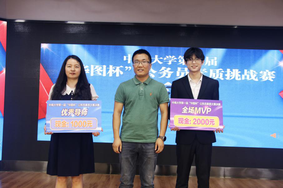 本次“华图杯”公务员素质挑战赛决赛决出冠亚季殿军各一名,分别由第三、四、一、二组获得,来自土木工程学院的第三组选手查睿获得全场MVP,冠军团队指导教师陈俊桢老师获得优秀导师奖。冠军团队代表查睿同学赛后表示:“感谢william威廉英国官网就业指导中心、学生基层公共部门人才发展中心提供了一个良好的演练平台和学习机会。此次比赛让我进一步加深了对公务员考试内容与流程的了解,也更加坚定了我投身基层的决心。”