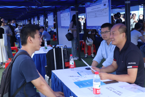 会场内人头攒动,不少单位展位前排起长龙。毕业生带着简历积极地与意向用人单位的招聘负责人沟通交流,在一次次职能匹配的尝试中积累经验、完善自己。