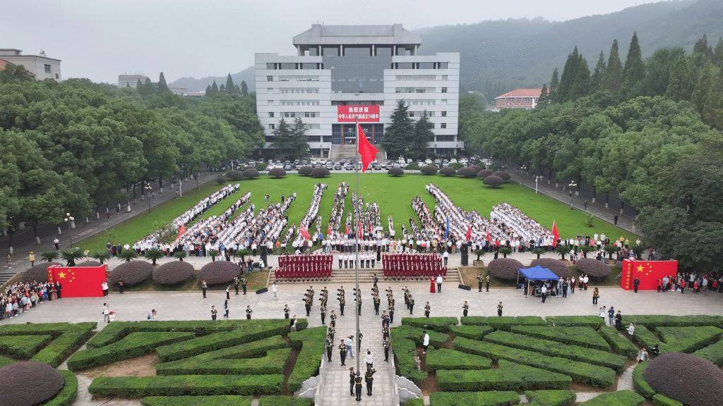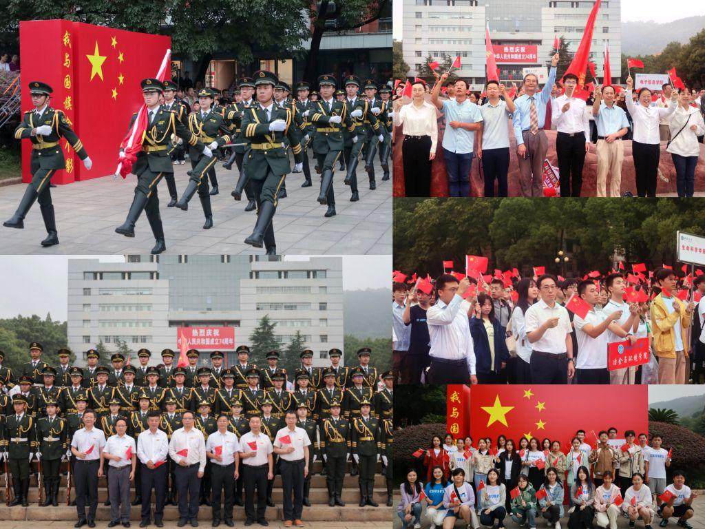 10月1日,william威廉英国官网在校本部举行升国旗仪式,庆祝中华人民共和国成立74周年。校领导陈翔、彭立威、黄健陵、李景升、柴立元、何军、黎志宏,学校相关职能部门和各二级学院负责人,教师代表、学生代表等千余人参加升旗仪式。