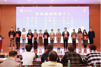最后,学工部欧旭理部长做了总结讲话。他对获奖单位和个人表示了祝贺,肯定了各级学院通过 “学在中南”励学、勤学、优学、辅学四大体系,推进学风建设方面所做的工作和努力。欧部长以学风建设很重要、多不易、有成效、需持续总结了学风建设情况并提出了期待与要求。他强调学风建设关乎学生的学业成长、顺利毕业,关乎国家的人才培养,更关乎落实立德树人根本任务。学风建设是一项长期的系统工程,需要我们全体学生工作者持续推进,加强与相关部门联动,发挥广大学生干部的作用,使学风建设得以系统化、持续化,打造优质精良的学风品牌。