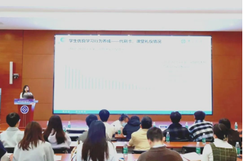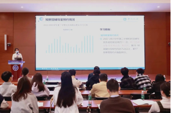学风建设情况总结环节,学生事务办秦康老师,针对会上发布的《2022-2023学年第二学期本科生学风建设总结报告》,通过全校同期成绩分析、各学院不及格率、学院突出案例、学业帮扶效果(补考通过率)等方面分析汇报了2022-2023学年第二学期的本科生成绩的总体情况。此外,秦康老师也对知新馆及辅学工作做了整体汇报。从各类课程的开课情况、全校性基础课程辅导的开展情况到各学院参与知新馆课程及预约辅导教室的情况均进行了说明。知新馆通过“辅学直通车”、“三十天变星记”等系列活动不断提升辅学针对性,开展学院学风建设精品活动,提升辅学的覆盖度。学生事务办宁霞老师总结了学生优良学习行为养成、学生违纪、辅导员查寝查课以及问渠活动四个方面的情况。根据统计数据,展示了2022-2023学年第二学期,各学院到课率、熄灯率、课堂礼仪、代刷卡及考试违纪总体情况。同时,还公布了辅导员查课总次数前十、查寝总次数前十及巡考总次数前八名的辅导员老师名单。上学期截至目前,问渠长廊已举办活动73场,其中大型活动30场,参与活动承办的学院达到25个,并介绍了本学期问渠长廊精品项目活动立项情况。