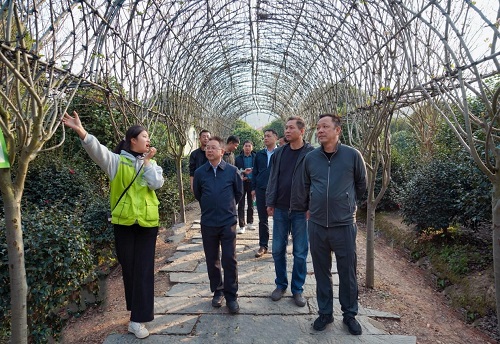 四季花开处处景,文旅相宜致振兴。在长沙(龙洞)园艺花卉谷基地,自然的气息便扑面而来:由六棵紫薇树组成的“六角亭”别致优雅;造型多样的苗木彰显工人技艺的巧夺天工;肆意生长的各类植株令人惊叹路途风光处处新;海棠长廊下学生的留言卡片代替暂时藏匿的海棠迎风起舞…… 据了解,这里春赏海棠,夏观紫薇,秋闻丹桂,冬品茶梅。目前,丹桂的篇章告一段落,茶梅的乐曲即将奏响。除了欣赏美景,同志们还了解了基地研学课程,植物扦插、植物喝水、植物医生、园艺造型……新奇的体验每年都吸引着万余学生的到来。从2015年创始人考察选址至今,长沙(龙洞)园艺花卉谷基地经过八年的发展,已然成为长沙市花卉苗木行业“一二三”产业融合发展的示范园,从卖树到卖景再到育人,长沙(龙洞)园艺花卉谷基地走出了一条文旅结合、景旅融合的绿色发展新路,成为推动莲花镇乡村振兴的中坚力量。通过实地考察,大家感受到农村的发展活力,坚定了对乡村振兴工作的使命感和认同感。