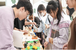 “学史明理”区人气颇高,许多同学围坐在一起,尝试传统的活字印刷术。文天骐同学兴奋地向我们展示了他“新鲜出炉”的拓印作品。同学们在木香与墨香交汇里体验了传统技术的精妙,在金句与文献中感受红色历史与时代新篇章。