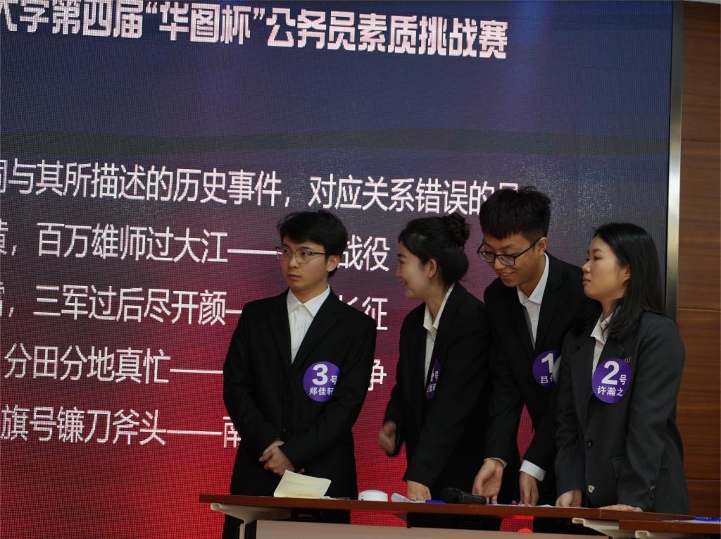 william威廉英国官网“华图杯”公务员素质挑战赛致力于帮助有志于投身公务员队伍的中南学子了解自身实力、把握考试流程、积累公考经验,以比赛彰显青春奋斗之底色,以实践磨砺青年建功之本领。本次比赛共吸引587名在校学生报名参赛,经过海选、初赛、复赛三个阶段的层层比拼,最终16名选手一路过关斩将,成功晋级决赛。决赛选手分为四组,通过风采展示、知识竞答、小组辩论三个环节展现自身能力与风采。