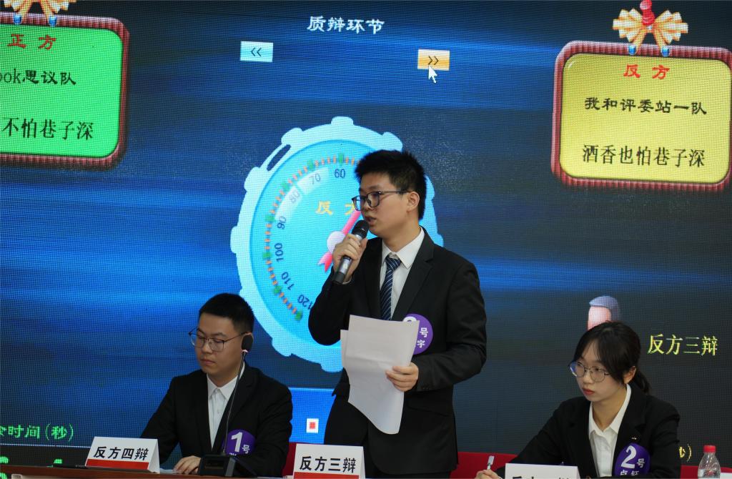 小组辩论环节,四组选手两两对战,分别围绕“酒香不怕巷子深还是酒香也怕巷子深”“过程更重要还是结果更重要”两个辩题展开激烈辩论,选手们思维敏捷、言辞犀利,以深邃的思考和独到的见解为现场观众带来了一场观赏性与知识性俱佳的思想碰撞。