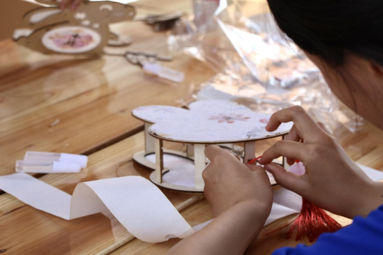 心手相连,共制非遗之美。非遗体验区成为同学们争相涌动的焦点,热闹非凡。学生们亲手制作精美的中秋灯笼与独具匠心的漆扇,点亮心中对传统文化的向往。