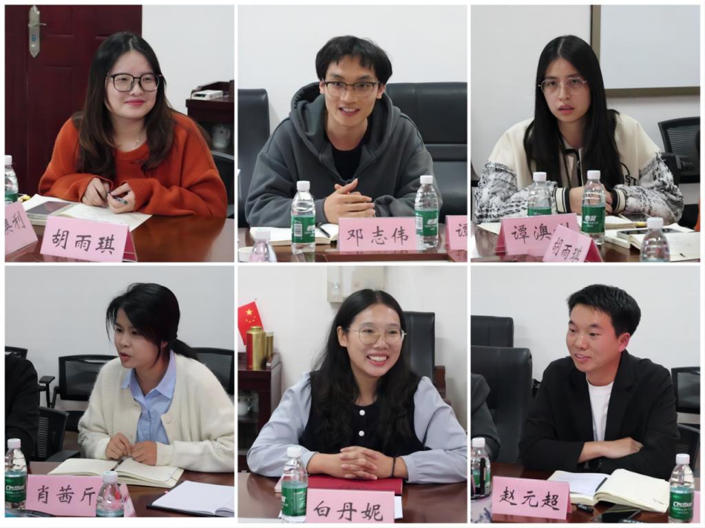 随后,调研组就辅导员熟知学生情况进行随机询问。调研组随机从每位辅导员负责的学生信息表中抽取5位学生,由所负责的辅导员一一介绍学生基本情况。胡雨琪、邓志伟、谭澳利、肖茜斤、赵元超、白丹妮依次回答调研组询问,详细汇报了学生的基本信息、性格特征、家庭情况、学业情况、在校表现、思想动态、情感状况等情况。在询问过程中,全体辅导员回答内容完整、描述简洁清晰、情况了解深入。