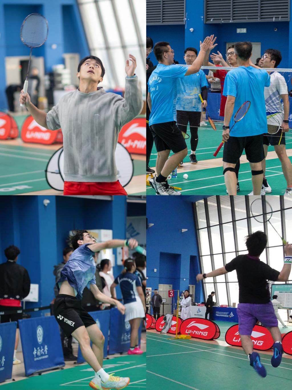 赛场上,师生携手、互相配合、全力以赴、攻防对抗。选手们彼此间通过眼神和手势交流战术,挡网、封网、后场扣杀等战术运用得恰到好处。精彩的对决赢得了现场观众的阵阵掌声和欢呼,比赛战况跌宕起伏、扣人心弦,整个体育馆沉浸在一片热烈欢快的海洋之中。