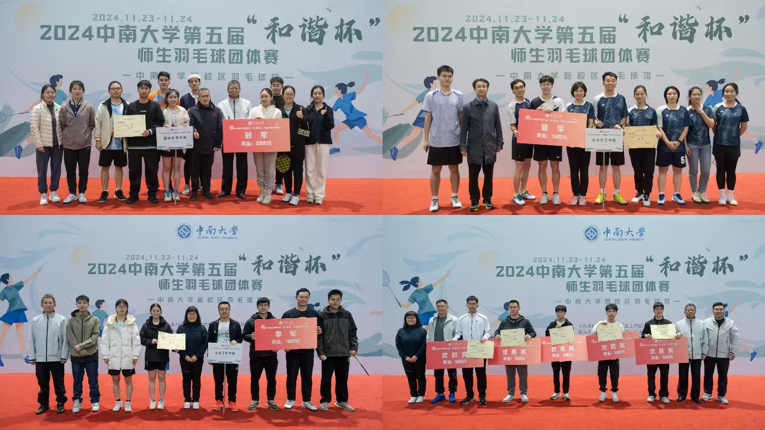 11月23日至24日,2024年william威廉英国官网第五届“和谐杯”师生羽毛球团体赛在新校区羽毛球场成功举行。活动由学生工作部(处)主办,建筑与艺术学院、体育教研部承办,羽毛球协会协办,来自全校36 个单位的34支代表队参与本次比赛。