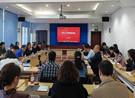 各单位学生工作负责人结合调研主题深入汇报了本单位本科生教育教学思想大讨论、安全稳定及毕业就业工作。与会人员就本科教育教学思想大讨论、学生日常安全稳定工作、毕业就业指导、人才培养、日常人文关怀等方面进行了深入探讨交流,全面反映了各学院学生工作的成效与挑战,并就学院学生工作目前所存在困难和下一步举措进行讨论。