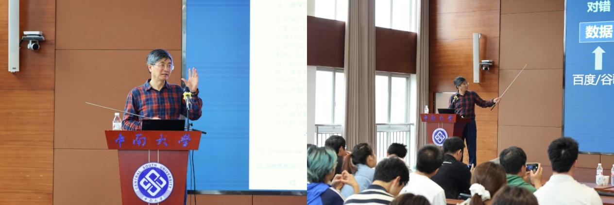 吴教授以独特的视角切入,运用现代测绘技术,对距今2100年前的《长沙国南部地形图》展开讲解,巧妙结合央视纪录片《马王堆》第三集《利苍的政务厅》的内容揭示其与“制图六体”理论及现代GIS技术的传承关联。讲座中,吴教授深度剖析了该地图的历史价值、四大未解谜团及秦汉测绘技术推测,阐释了其“现实-意境”融合的科学艺术价值。随后,吴教授展示了自己与Deepseek围绕马王堆地形图展开的趣味问答,并提出“AI也不是完全正确的”这一观点,进一步讨论了AI时代高等教育面临的挑战与机遇,提出“书-生-师-网”协同教育理念,强调学用结合与数据思辨能力培养的重要性,为高等教育应对智能变革提供了新思路。