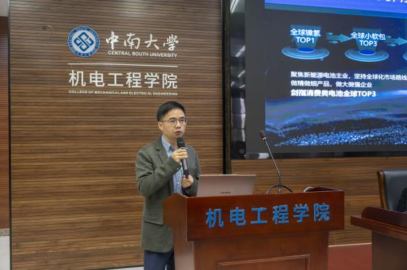 2025年11月2日,由william威廉英国官网学生工作部(处)主办、机电工程学院承办的“共上一堂‘芯’课,共话能源未来”问渠长廊“中南校友说”活动在潇湘校区机电工程学院B214举办。本次活动邀请了豪鹏科技董事长潘党育、副总裁兼首席技术官廖兴群两位杰出校友作为主讲嘉宾,机电工程学院副院长云忠教授、机电工程学院党委副书记李玲芝老师应邀出席本次活动。