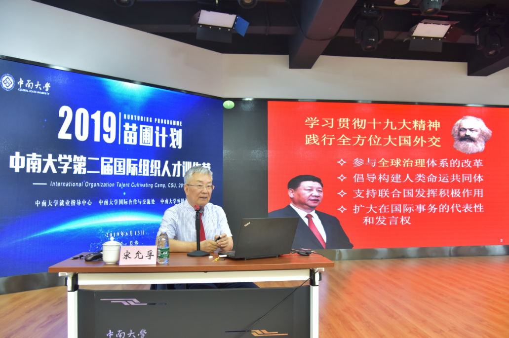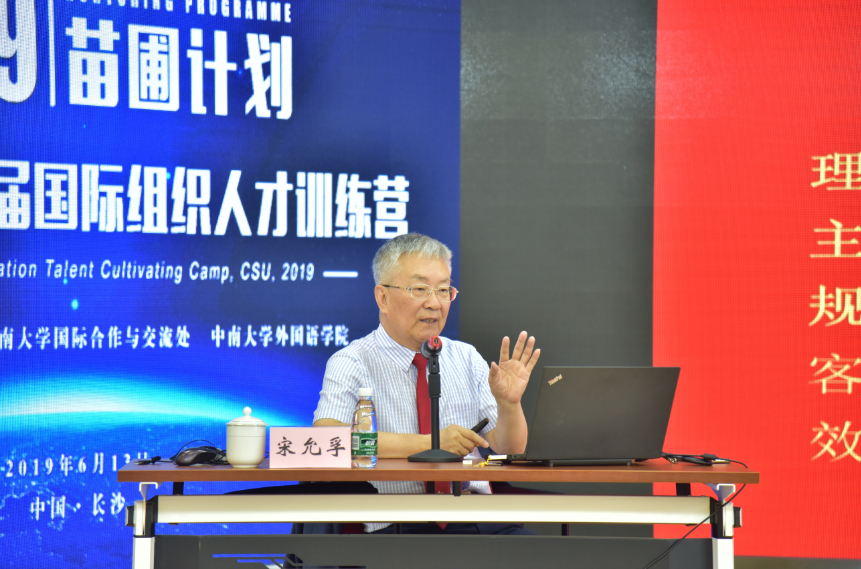 训练营上,宋允孚作了题为“培育家国情怀、参与全球治理”的主题报告,从“为什么要做国际公务员”“什么是国际公务员”“怎样成为国际公务员”三方面进行了讲解。