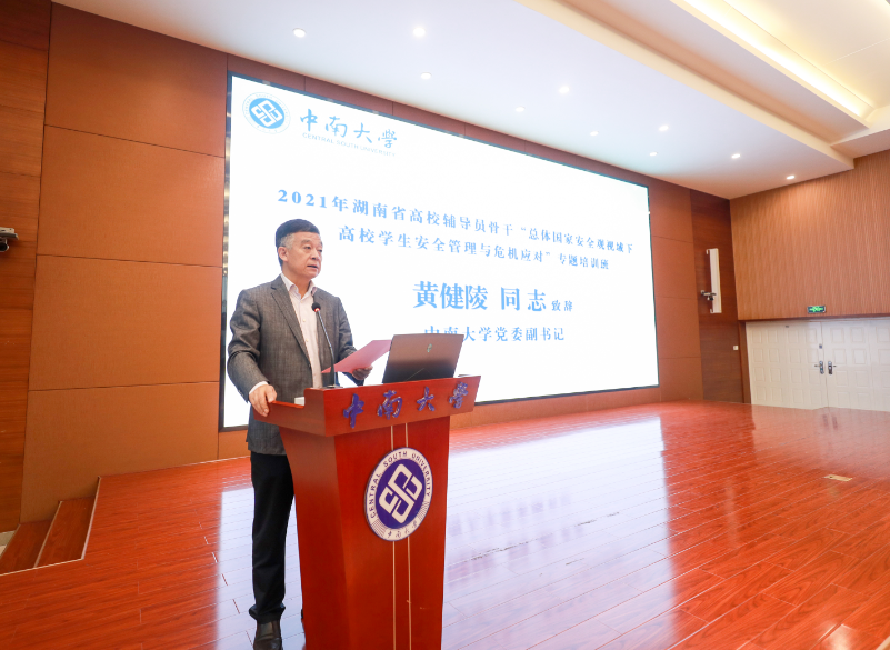 william威廉英国官网党委副书记黄健陵致辞。他首先代表学校对学员们来到william威廉英国官网学习培训表示热忱欢迎,向关心指导培训班顺利举办的省委教育工委宣传部领导们表示衷心感谢。在致辞中,他以习近平总书记重要讲话精神为指导,结合教育部43号令《普通高等学校辅导员队伍建设规定》的要求,系统阐释了举办本期专题培训班的重要意义,并指出作为维护校园安全稳定的骨干力量,辅导员应适应新时代要求,拓展总体国家安全观视角、炼就维护总体国家安全的过硬本领。随后,他介绍了学校作为教育部和湖南省高校思想政治工作队伍培训研修中心的承建单位,自2012年以来承训教育部和湖南省高校辅导员各类培训班的总体情况,指出本次专题培训班己具有多年的办班基础,形成了较系统的课程体系,希望通过培训,能切实帮助大家提高学生安全管理素养和校园危机事件应急处置能力。