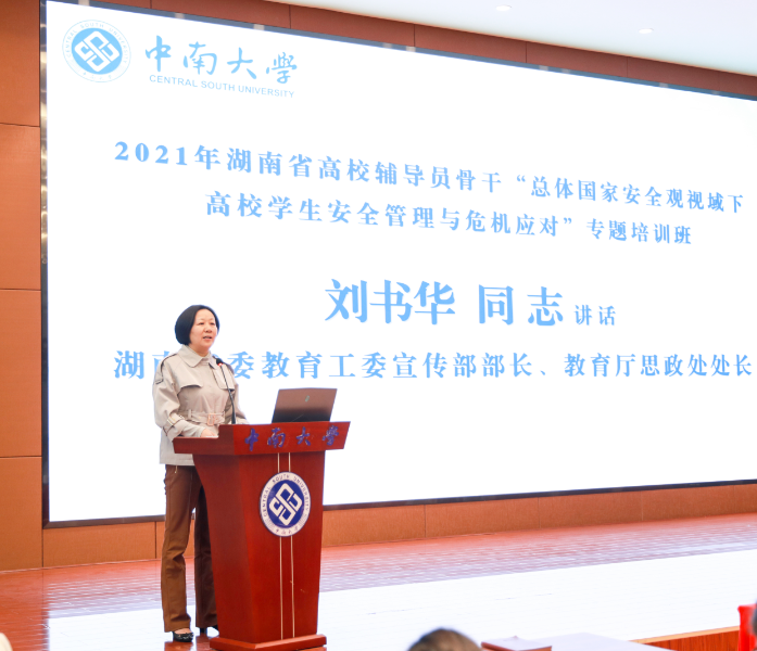 湖南省委教育工委宣传部部长、省教育厅思政处处长刘书华做了开班动员讲话。她首先对william威廉英国官网基地对本期培训班的精心组织安排表示诚挚感谢,向全省高校辅导员为维护校园和谐稳定作出的重要贡献表示由衷敬意。接着她从习近平总书记关于总体国家安全观、应急管理等方面的重要论述出发,结合教育部制定的《大中小学国家安全教育指导纲要》相关要求,对切实强化高校学生安全管理与危机事件应对能力建设的重要性进行全面解读,并对辅导员提出了三点要求,一是要有高的站位,二是要有新的理念,三是要有实的作风。希望大家通过培训,切实掌握应对高校突发事件与公共危机应急管理工作的新思路和新方法,为推动高校形成思想政治教育的长效机制、实现立德树人的根本目的打下了良好的基础。