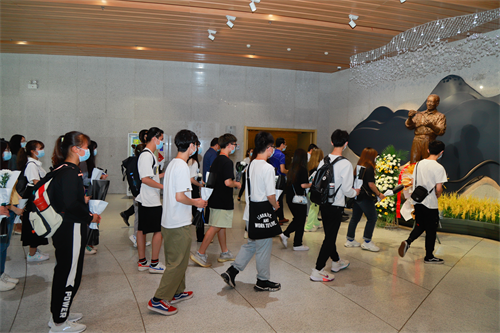 走进这个形态别致像五粒饱满稻穗的博物馆,同学们首先来到袁隆平院士雕像前,进行默哀献花仪式,深切表达对袁院士的缅怀和敬仰之情。在讲解员娓娓道来的讲述中,同学们依次参观了隆平水稻博物馆的三个展厅,在袁隆平与杂交水稻陈列厅,通过对袁院士在研究杂交水稻的道路上坚持不懈艰难探索的平凡而又伟大的经历中深刻体会了“禾下乘凉梦”、“杂交水稻覆盖全球梦”两个梦想的伟大;在水稻历史厅,大家对水稻的源起、稻作文化的发展以及稻作民俗的内涵有了更进一步的了解;在梦幻的水稻科技厅,同学们通过科技感十足的各类多媒体设备进行互动体验,了解了水稻的物理结构、生长过程、种植水稻的农作过程。同学们一方面对水稻的知识文化感到好奇,同时又被袁院士在艰苦卓绝的环境中不断奋斗的精神所感动。
