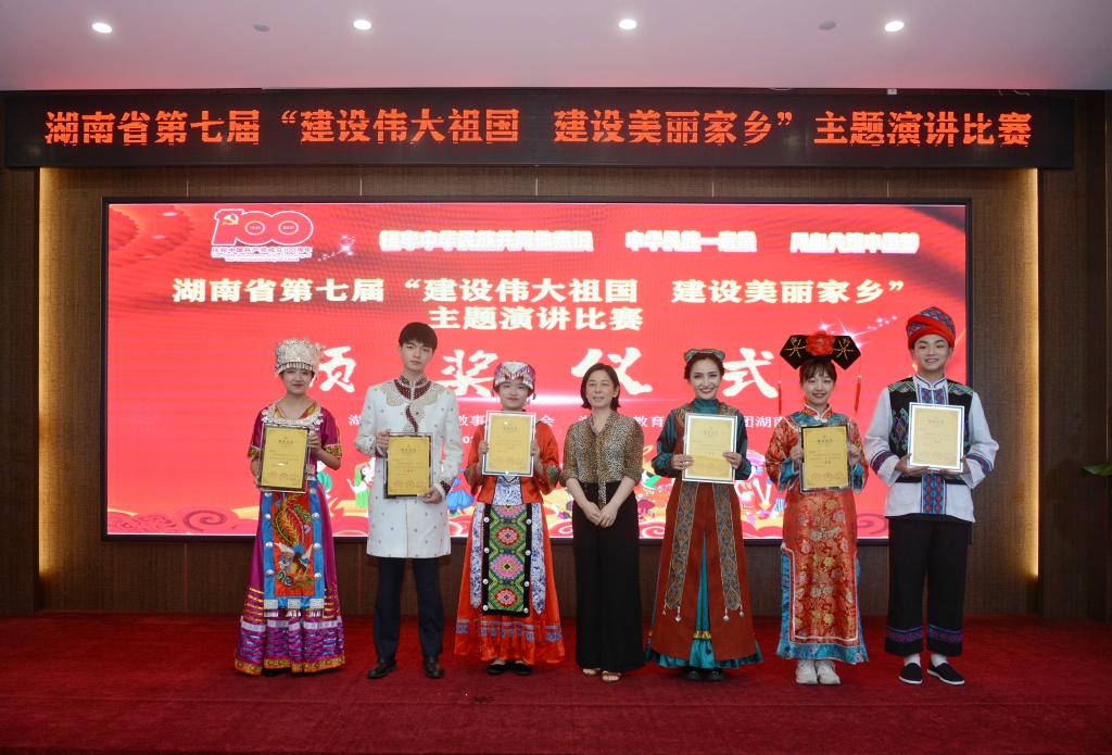2021年6月21日上午,由湖南省民宗委、湖南省教育厅、共青团省委联合主办的湖南省第七届“建设伟大祖国 建设美丽家乡”主题演讲比赛在长沙举行。我校文学与新闻传播学院汉语言文学专业20级塔塔尔族学生娜迪亚·乃比多拉以最高分荣获高校组一等奖,文学与新闻传播学院文化传播学19级土家族硕士研究生周泓妍获得高校组三等奖。