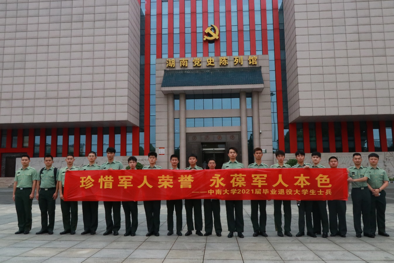 为热烈庆祝中国共产党建党100周年,不断丰富征兵育人链条载体,持续增强退役大学生士兵的归属感和荣誉感,6月18日,我校退役大学生士兵之家组织2021届毕业退役大学生开展以“珍惜军人荣誉,永葆军人本色”为主题的毕业纪念活动。通过参观湖南党史陈列馆和雷锋纪念馆、重温入伍誓词、座谈交流等活动,助力毕业退役大学生涵养家国情怀,凝聚奋进斗志。